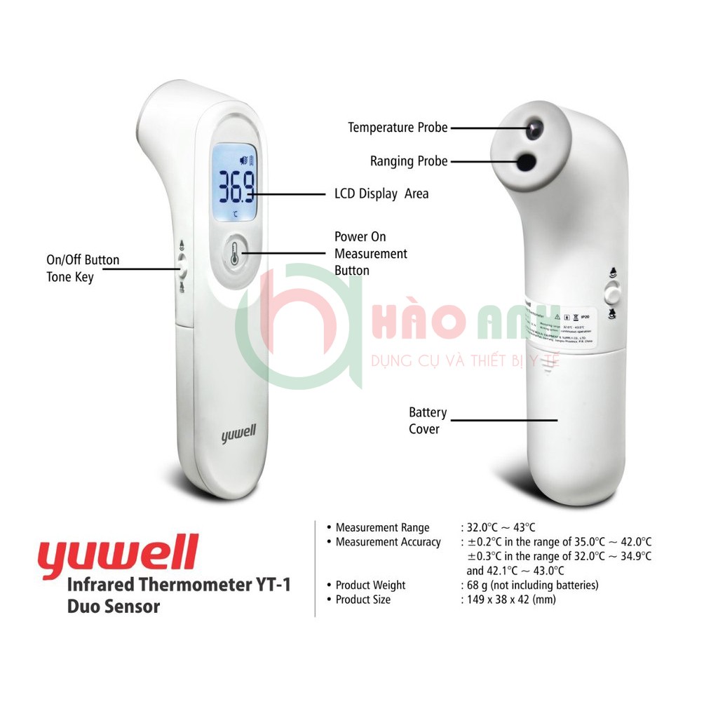 Nhiệt kế điện tử hồng ngoại yuwell Yuwell YT-1 bắn trán - Dùng đo nhiệt độ cơ thể trong gia đình (Cả người lớn và trẻ nhỏ)