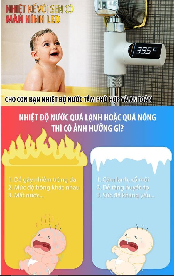 Nhiệt Kế Vòi Sen Có Màn Hình Hiển Thị Nhiệt Độ Shower Temperature [Được kiểm hàng] Shower Temperature