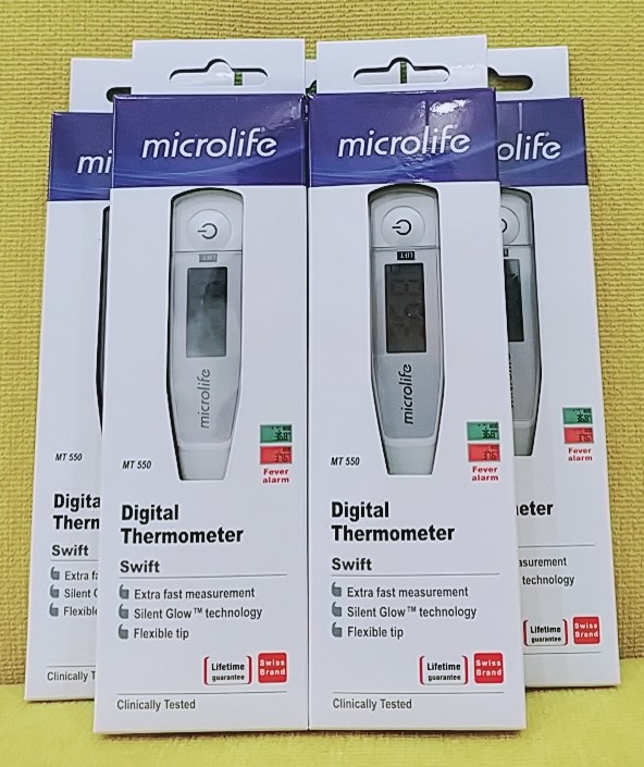 Nhiệt kế điện tử Microlife MT550, báo sốt 10 giây, dạng bút, đo thân nhiệt vùng miệng, nách, hậu môn. Báo sốt tiếng bíp sau khi đo.Nhiệt kế điện tử là dụng cụ y khoa cần thiết cho mọi gia đình, đặc biệt là những gia đình có trẻ nhỏ hoặc người già.