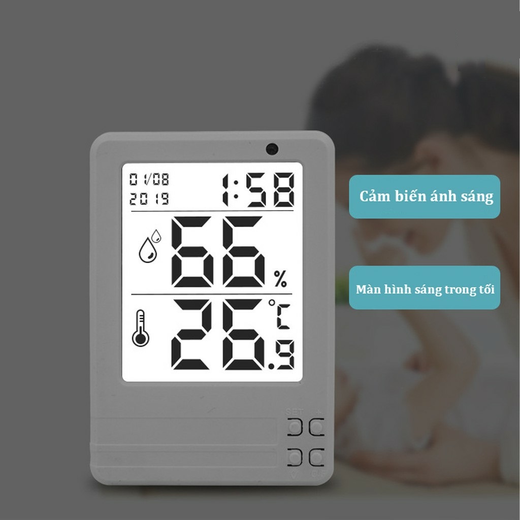 Nhiệt ẩm kế điện tử thông minh màn hình LCD Intelligent Backlight Thermohydrometer Nhiệt kế xem được vào ban đêm Màn hình tự động điều chỉnh độ sáng tùy thuộc vào độ sáng của môi trường