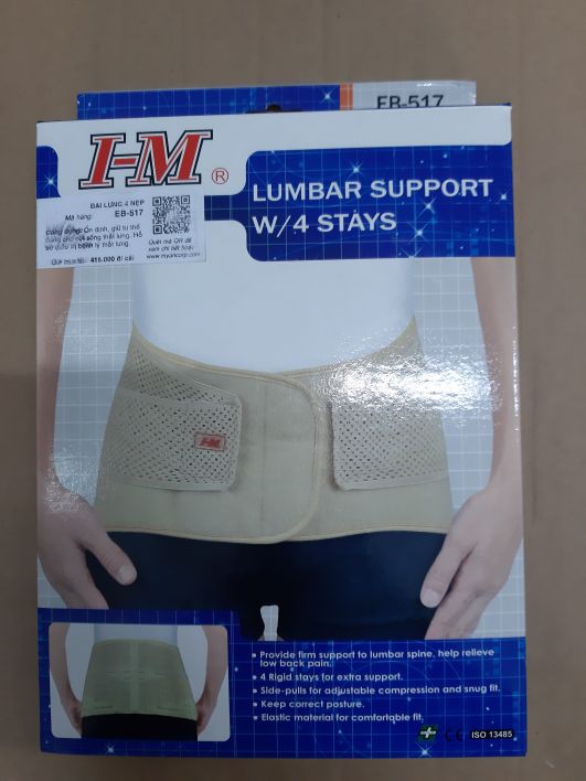 Đai thắt lưng 4 thanh nẹp nhôm, cao 23 cm. Thay đổi áp lực bằng dây đai tăng cường có khóa velcro chắc chắn.CẤU TẠO:- Chất liệu lưới xốp mật độ cao thoáng khí, đàn hồi cao.- Lớp Hydrophilic bên trong hút mồ hôi, lớp Hydrophobic chống thấm nước từ bên ngoài.- 30% Rubber, 40% Cotton, 30% PolyesterCÔNG DỤNG:- Giữ tư thế đúng cho cột sống ( từ T11 tới L5).- Giúp phòng ngừa & hỗ trợ điều t.rị chấn thương , bệnh lý cột sống (thoái hóa đốt sống, gai cột sống, thoát vị đĩa đệm...).- Hỗ trợ phục hồi chức năng sau chấn thương.CÁC THANH NẸP NHÔM ĐÀN HỒI CAO & AN TOÀN: Các sản phẩm thiết bị y tế của chúng tôi luôn hướng đến chất lượng sản phẩm và công năng sử dụng cho khách hàng tạo nên y tính và chất lượng tốt nhấtCskh đt hoặc zalo 0789853324