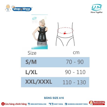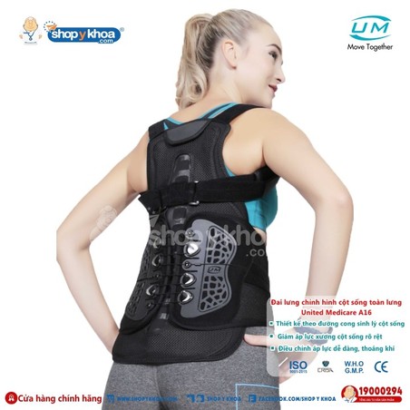Đai lưng chỉnh hình cột sống toàn lưng UM (A16) có thiết kế đặc biệt ôm trọn cả vùng lưng và vai, giúp hỗ trợ cho cột sống toàn lưng.