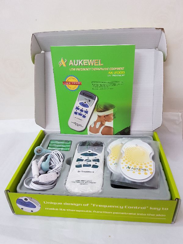 Máy massage xung điện Aukewel AK-2000 Theo quan niệm của Y học Cổ Truyền, khi cơ thể nhức mỏi là kinh mạch không thông suốt, chất thải trong người tắt nghẽn tạo nên. Việt nam, là một nước thuộc khí hậu nhiệt đới, nên rất dễ nhiễm các loại bệnh tật. Đặc biệt, ở độ tuổi trung niên chiếm 40%. Các chuyên gia Y học cho rằng: mọi người nên đặc biệt chú ý đến sự phát triển của các cơn đau, chúng có khả năng dẫn đến rối loạn hệ tuần hoàn, làm giảm khả năng miễn dịch, thậm chí dẫn đến bệnh nhồi máu cơ tim, bệnh đường ruột, bệnh tiểu đường, bệnh ung thư và các bệnh ác tính khác. Mùa mưa, thời tiết ẩm ướt gây ra các bệnh như: viêm khớp vai, đau cột sống, đau cổ, phong thấp, lưng mỏi, vai đau,… Vì vậy, để phòng ngừa và các bệnh nhức mỏi cơ thể, Mạnh Nguyễn xin giới thiệu máy massage xung điện Aukewel AK-2000Máy massage xung điện Aukewel AK-2000 có những đặc điểm gì?Máy massage xung điện Aukewel AK-2000 sử dụng công nghệ xung điện với tần số thấp là một thiết bị chăm sóc sức khỏe thế hệ mới được phát triển trên nền tảng vất lý, điện sinh học, y học Cổ Truyền và kỹ thuật điện tử hiện đại và qua nhiều quá trình thử nghiệm lâm sàng.Máy massage xung điện Aukewel AK-2000 có 6 chế độ với chức năng riêng được sử dụng độc lập theo thứ tự: Gentle ( Đấm bóp nhẹ), Continuous hammering ( Đấm bóp liên tục), Acupunctune (Châm cứu), Naprathy (Xoa bóp), Cupping (Giác hơi) Stimulate (Kích thích), cộng thêm chức năng “2000Hz” kích thích có khả năng châm cứu sâu vào da cho hiệu quả vượt trội, khắc phục khả năng châm nong của các máy khác cùng loại trên thị trường.Máy massage xung điện Aukewel AK-2000 tác dụng trực tiếp lên các huyệt đạo trên cơ thể. Cơ sở dự trên cảm giác của sự kéo – đẩy, sự giữ lại và sự xoắn sâu của thuật châm cứu, định hình nên kích thích tần số thấp, hạn chế dây thần kinh giao cảm, làm cho tế bào chứa máu giãn ra, tăng khả năng tuần hoàn máu, tăng khả năng hấp thụ các mô, vì thế làm giải tỏa chỗ viêm và sưng. Trong khi đó, năng lượng cao của kích thích sẽ phân tác các dòng điện giao cảm kích thích lên các dây thần kinh và làm việc dẫn truyền cảm giác đau lên vỏ não, tạo ra tác dụng châm cứu khác nhau và phát sinh giảm kích thích đau lên não. Công thêm, xung lực của dòng điện phân phối kích thích lên các cơ thần kinh, gây co và giãn cơ, tạo nên hiệu quả cao trong quá trình hoạt động, Điều này sẽ làm giảm sự mệt mỏi và giải quyết các cơn đau thần kinh ngoại biên hay tế liệt thần kinh.Hướng dẫn sử dụng:Mở nguồn: Chọn phương pháp và mở máy ở vị trí “OFF” xoay xuống dưới và tăng cường độ. Lúc này đang ở chế độ đấm bóp nhẹ và đèn hiển thị sẽ sáng lên, sau đó, tự chọn chế độ theo ý mình.Bình thường không nên sử dụng phím “2000Hz”. Sau thời gian dài sử dụng và đã quen với các phương pháp thì dùng thêm chức năng “2000Hz” cho mạnh và sâu hơn.Xoay công tắc chậm để không bị giật đột ngột, tùy trường hợp, bạn có thể chọn cường độ thích hợp từ 1 – 10.Đang sử dụng, muốn đổi vị trí hay gỡ miếng dán, phải tắt máy trước, xoay nút “Intensity” đến nút “ OFF” rồi mới đổi vị trí, sau đó mở máy nhằm tránh đổi cảm giác đột ngột.Thời gian : 1 lần cho mỗi chỗ 10 -15 phút mỗi lần, 1-2 lần/ ngày.Sau 15 phút máy sẽ tự động ngắt. Mỗi lần chọn chế độ mới máy sẽ bắt đầu lại từ 0. Nếu muốn tiếp tục phải chờ sau khi tắt máy 3 giây, mở máy lại sử dụng bình thường.