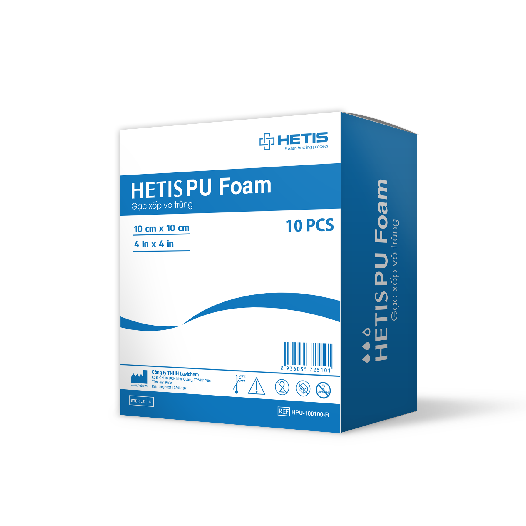 Size lớn 20x20cm - Hộp 5 miếng Gạc xốp thấm hút dịch vết thương HETIS PU FOAM