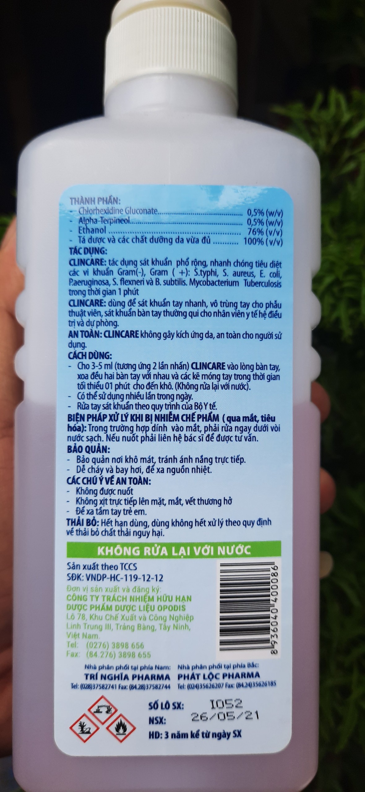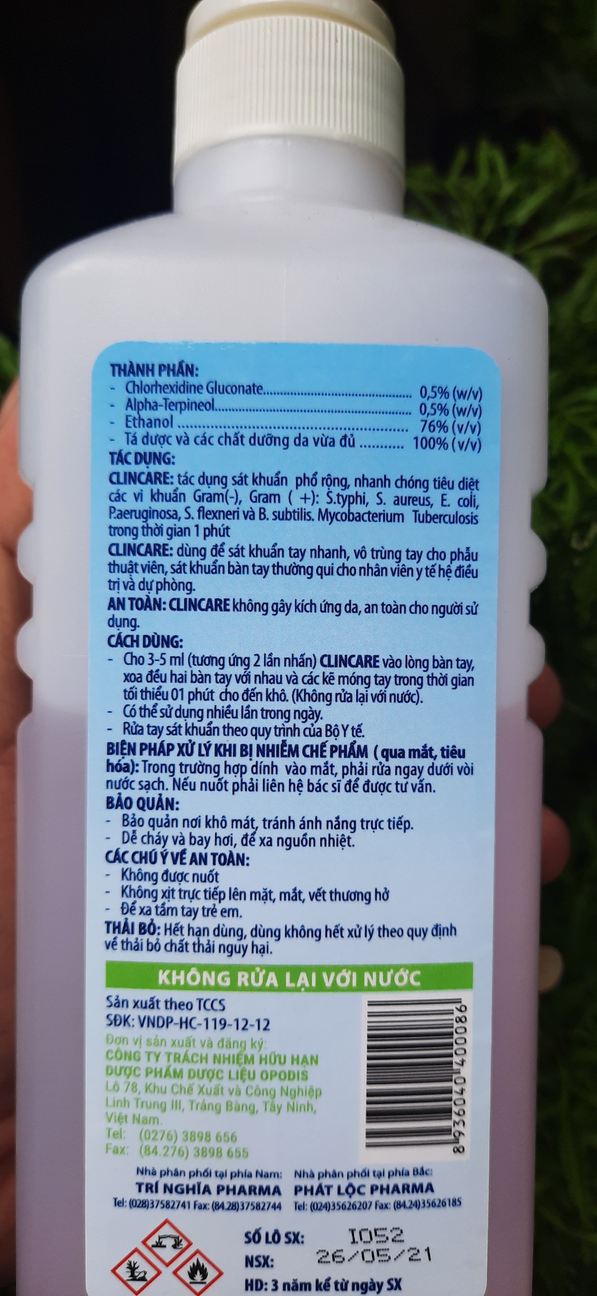 Tác dụngCLINCARE là dung dịch sát khuẩn bàn tay nhanh và khử khuẩn bề mặt vật dụng.CL