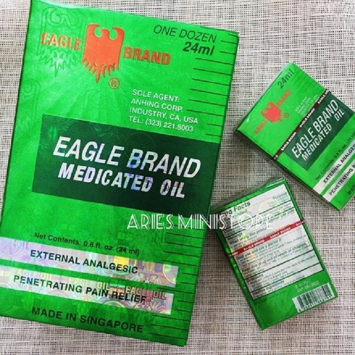 [Free ship] Combo 3 chai Dầu Gió Xanh 2 Nắp Sư Tử Singapore Nhập Khẩu 24ml Dầu gió xanh con Ó Eagle Brand 24ml ( có team xuất x 189.000đ