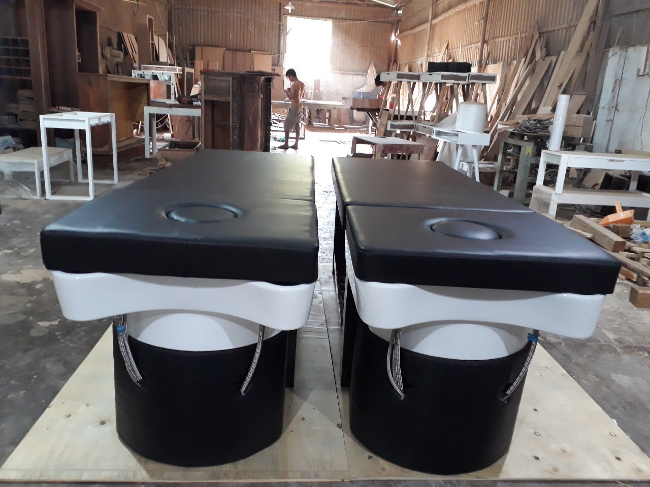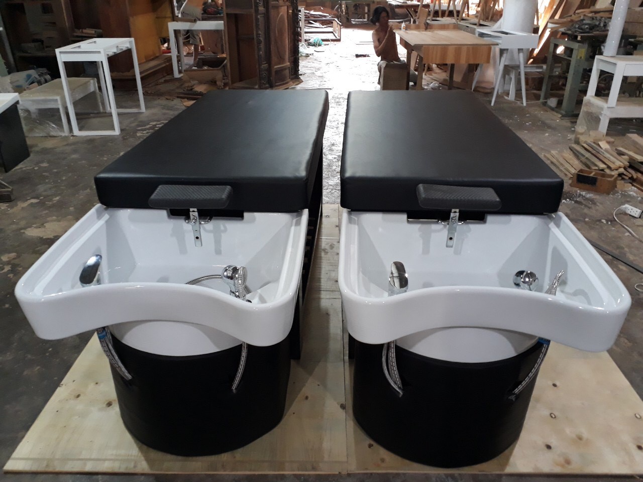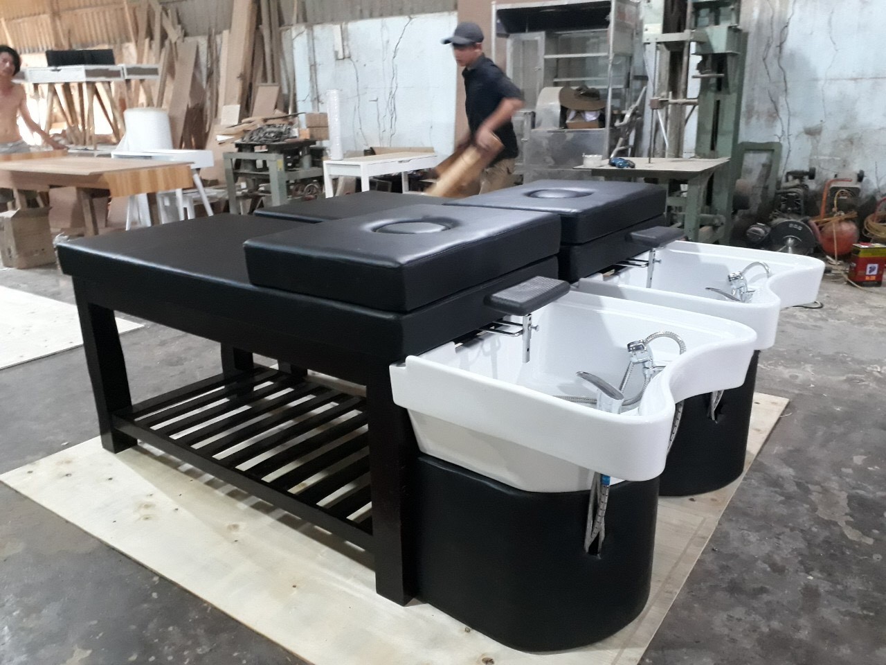 Giường gội đầu 2in1 cao cấp bồn sứ Đậy nắp lại thành giường massage