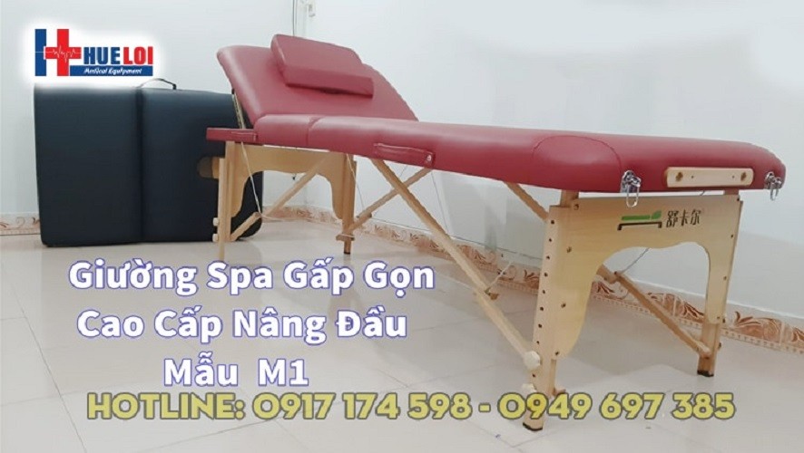 GIƯỜNG MASSAGE GẤP GỌN CHÂN GỖ NÂNG ĐẦU HL5 - Giươ...