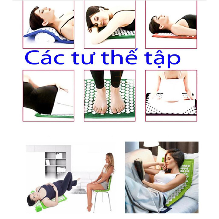 Tác dụng : Giảm căng cơ, đau lưng và đau đầu bằng cách đơn giản nằm trên thảm hàng ngày trong 10-30 phút. Bấm huyệt giải phóng endorphin ngăn chặn cơn đau, và giúp thư giãn các cơ ở lưng, cổ và bàn chân của bạn. Thảm xốp có đệm đủ lớn để phù hợp với lưng đầy của bạn, và không giống như nhiều thảm chỉ che lưng của bạn, bộ này bao gồm một chiếc gối được bọc trong các điểm áp lực acu để hỗ trợ cổ và giảm đau toàn diện hơn. Nằm ngửa và thư giãn trên chiếc giường của Kim này để xoa bóp các điểm áp lực giúp giải phóng cơ bắp chặt chẽ và giảm căng thẳng. Sử dụng trước khi đi ngủ để cải thiện thời gian nghỉ ngơi và giảm chứng mất ngủ. Hàng ngàn điểm bấm huyệt kích thích các dây thần kinh và cải thiện lưu thông máu để tăng năng lượng và phục hồi cơ bắp nhanh hơn, giúp người dùng ngồi tại bàn làm việc hàng ngày, cũng như các cá nhân và vận động viên năng động