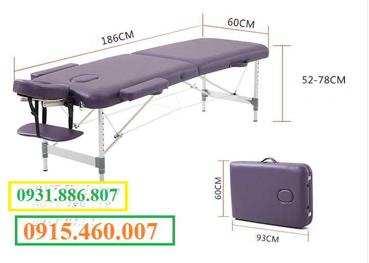 1, Kích thước tổng thể: Dài = 186cm , Rộng = 60cm, Cao = 52-78cm Kích thước vali: dài 93cm, rộng 60cm, cao 19cm2, Khung nệm giường chia ra làm 2 phần: thân - chân3, Có phần nâng đỡ đầu điều chỉnh độ cao linh hoạt4, Có lỗ thoáng Khi nằm úp mặt xông hơi5, Chân hợp kim nhôm được gia cố có độ rắn chắc và độ dẻo dai, có thể tải trọng tải tối đa lên đến 250kg6, Kết cấu vững vàng bởi hệ thống ốc vít và hệ thống dây cáp gia cường lực đặc biệt7, Phần body thân có thêm 2 mảng nệm tựa tay rất tiện ích và chuyên nghiệp8, Vải nệm PU mềm, độ bền cao9, Trọng lượng giường: 16kg- Giường massage gấp gọn dạng vali di động tiện dụng sử dụng cho các trung tâm thẩm mỹ viện, chăm sóc da homespa, hội nghị triển lãm sử dụng mỹ phẩm, các cửa hiệu phun xăm thẩm mỹ hoặc các buổi dã ngoại của công ty hay gia đình...- Chịu lực tải đều, ổn định trên tất cả các vùng trên mặt đệm, ko bị võng xuống, không bị rung lắc và phát ra tiếng kêu khi đang sử dụng.- Từ kiểu dáng thiết kế đến chất liệu đều hoàn mỹ, đa di năng.Hiện tại chúng tôi đã có chi nhánh ở Hà Nội – Đà Nẵng – TP. Hồ Chí Minh .Anh chị có nhu cầu về sản phẩm xin vui lòng gọi điện trực tiếp tới hotline: 0931.886.807 – 0915.460.007 chúng tôi sẽ tư vấn giải đáp mọi thắc mắc của anh chị. Xin trân trọng cảm ơn.