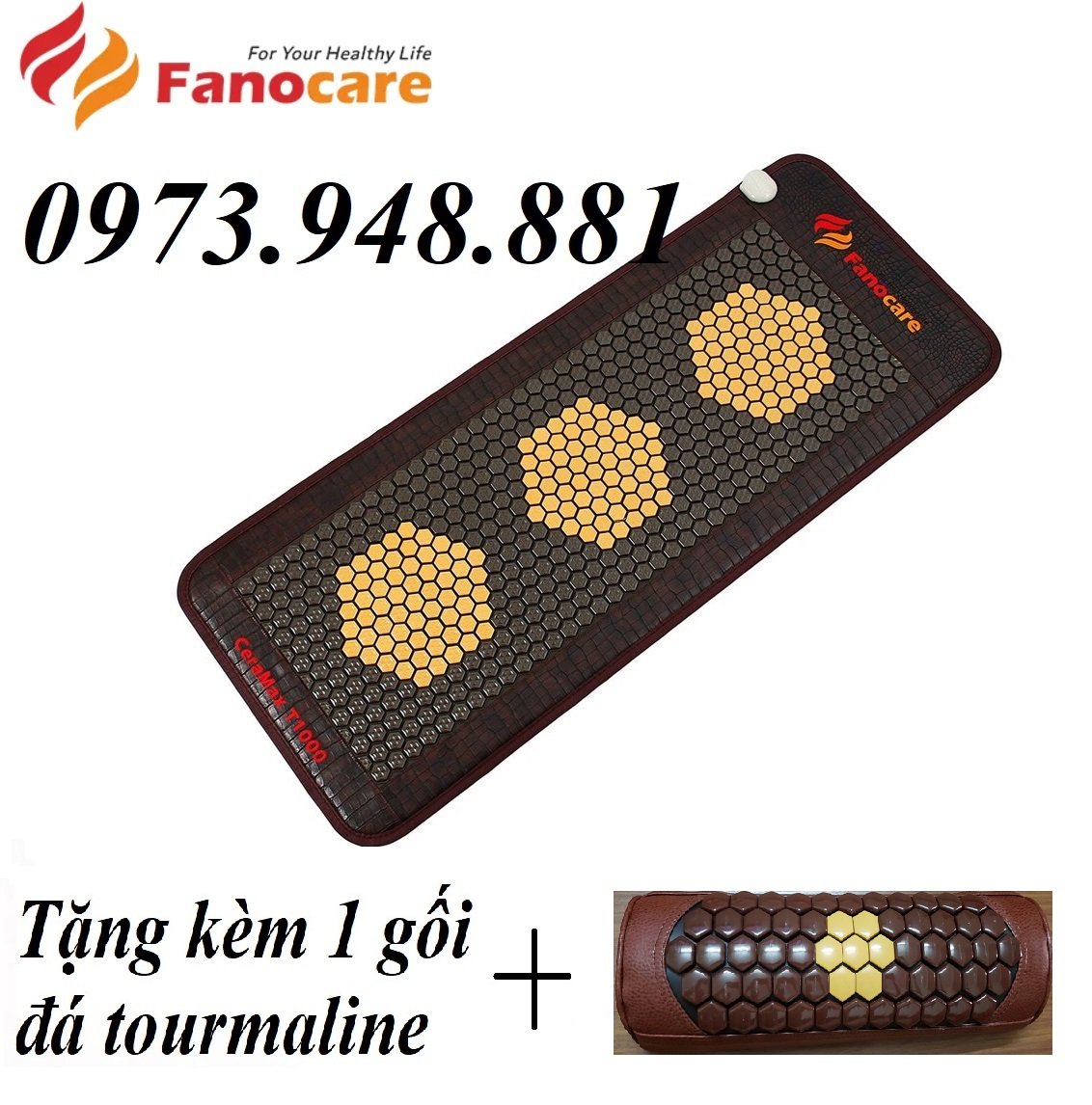 Thảm đá nhiệt nóng Fano kích thước 60x150cm (Tặng kèm 1 gối đá tourmaline)