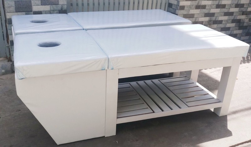 Mục đích: Sử dụng trong các cơ sở Massage, cơ sở chăm sóc sức khỏe, Spa, Hair Salon, Nail, TMV lớn nhỏ.Có vận chuyển đến tất cả các tỉnh thành miền Trung, các tỉnh miền Đông , các tỉnh miền TâyChất liệu: Gỗ Tràm * Bồn sứ trắngKích thước: Dài*Rộng*Cao : 190 * 70 * 70 (cm) (đã tính cả nệm)Màu sắc: Nệm: Trắng, Đen, và Màu sắc khác theo tùy chọn của khách hàng sẽ mất thêm thời gian 2-3 ngày