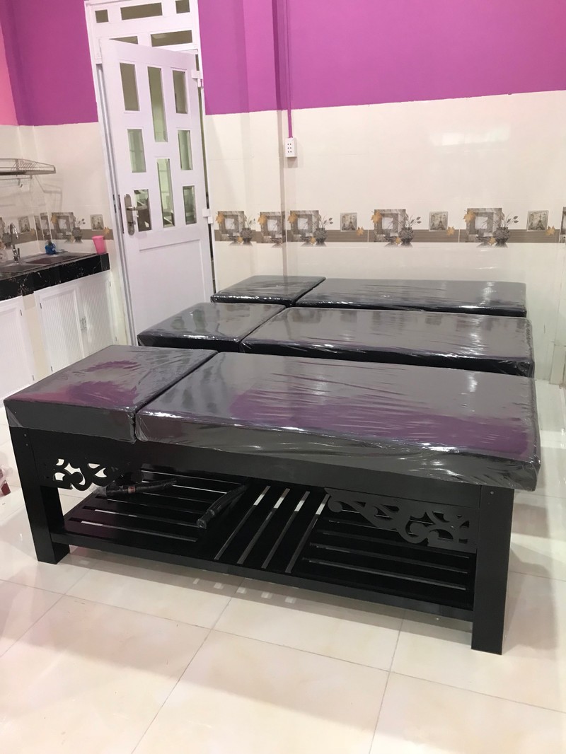 Mục đích: Sử dụng trong các cơ sở Massage, cơ sở chăm sóc sức khỏe, Spa, Hair Salon, Nail, TMV lớn nhỏ.Có vận chuyển đến tất cả các tỉnh thành miền Trung, các tỉnh miền Đông , các tỉnh miền TâyChất liệu: Gỗ tràm / Bồn nhựa màu đenKích thước: Dài*Rộng*Cao : 190 * 70 * 70 (cm) (đã tính cả nệm)Màu sắc: Nệm:Trắng, Đen, và Màu sắc khác theo tùy chọn của khách hàng sẽ mất thêm thời gian 2-3 ngày