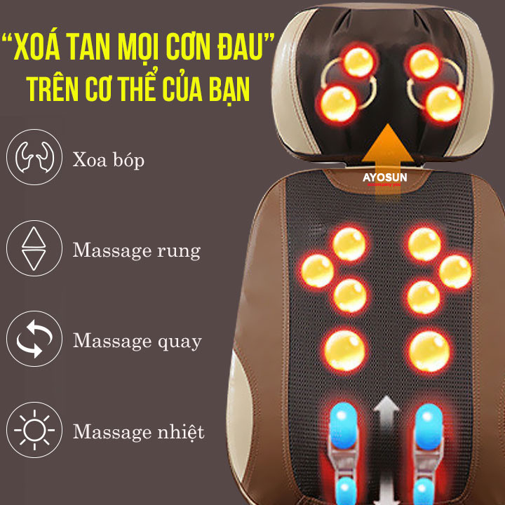 Features of aYosun Full Body Massage Cushion (New Generation) The rollers move up and down, left and right along the spine of the body with the ability to continuously rotate to create a completely different massage feeling for you to experience a more enjoyable feeling when using, more the hands of a spa technician. Infrared heat is responsible for heating cold areas, massage more deeply, stimulating the acupuncture points, increasing blood circulation, preventing and supporting the treatment of degenerative vertebrae, detoxifying the body …