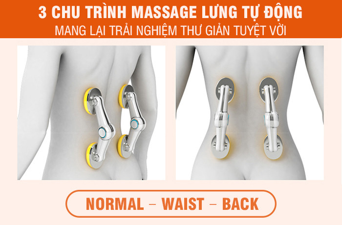 3 chu trình massage được thiết lập sẵn Normal – Waist – Back
