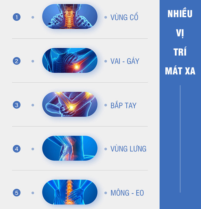 - Massage áp suất túi khí nén (mông, 2 bên hông, bắp tay, bắp chân)