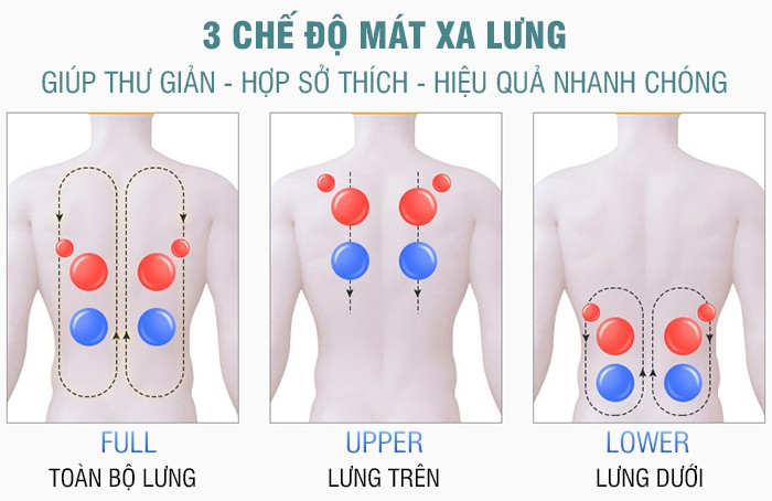 3 chế độ massage: Upper, Full, Lower ứng với 3 vùng lưng
