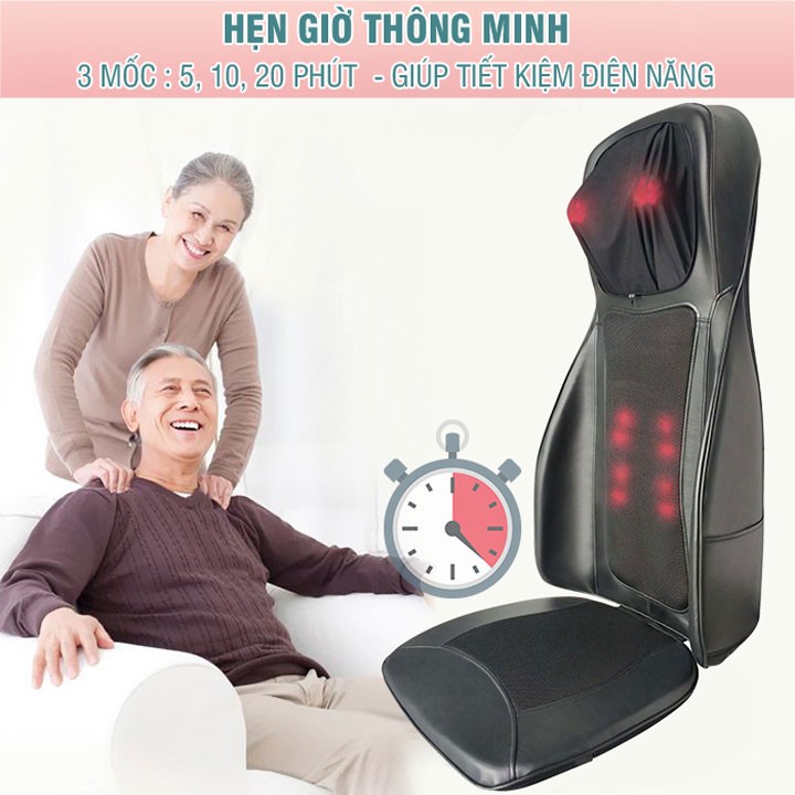 Để giúp người dùng kiểm soát thời gian sử dụng tốt hơn, nhà sản xuất đã trang bị cho ghế matxa Nikio NK-180 tính năng hẹn giờ thông minh với 3 móc thời gian tùy chọn là 5-10-20 phút. Máy sẽ tự động tắt khi hoạt động hết thời gian hẹn, giúp tiết kiệm điện năng hiệu quả.