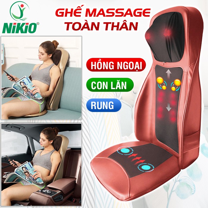 Ghế massage lưng, cổ, mông xoa bóp day ấn rung, nhiệt hồng ngoại Nikio NK-180 - Màu đỏ - HÀNG MỚI