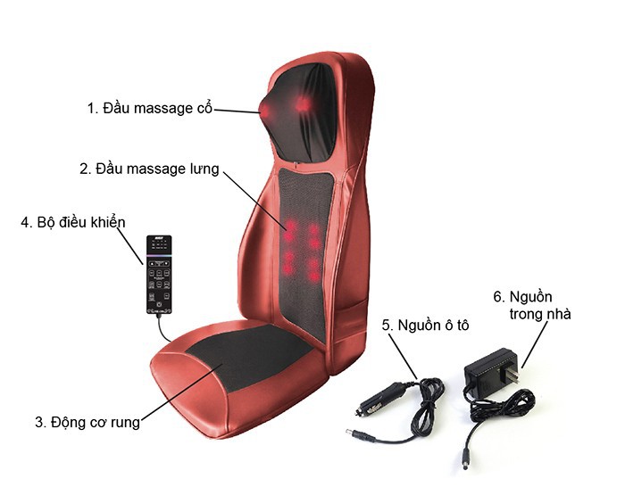 - Nút Heat: Nhấn nút để bắt đầu chức năng nhiệt sưởi cho lưng và cổ (đèn đỏ bật sáng), nhấn một lần nữa để dừng (đèn đỏ tắt).