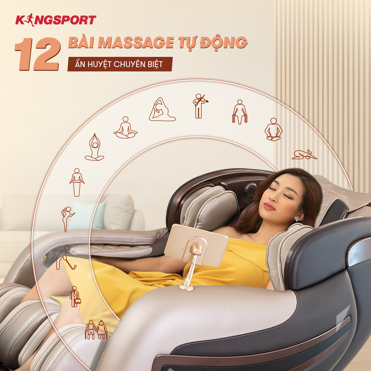 Với phương pháp di chuyển con lăn đa dạng như đấm, nhào, gõ, shiatsu kết hợp với túi khí 5 cấp độ tạo nên 12 bài massage đáp ứng nhiều nhu cầu trong gia đình như: Thư giãn, Kéo giãn cơ, Yoga, Trung niên, Mua sắm… Già trẻ lớn bé, ai trong nhà cũng được thư giãn!