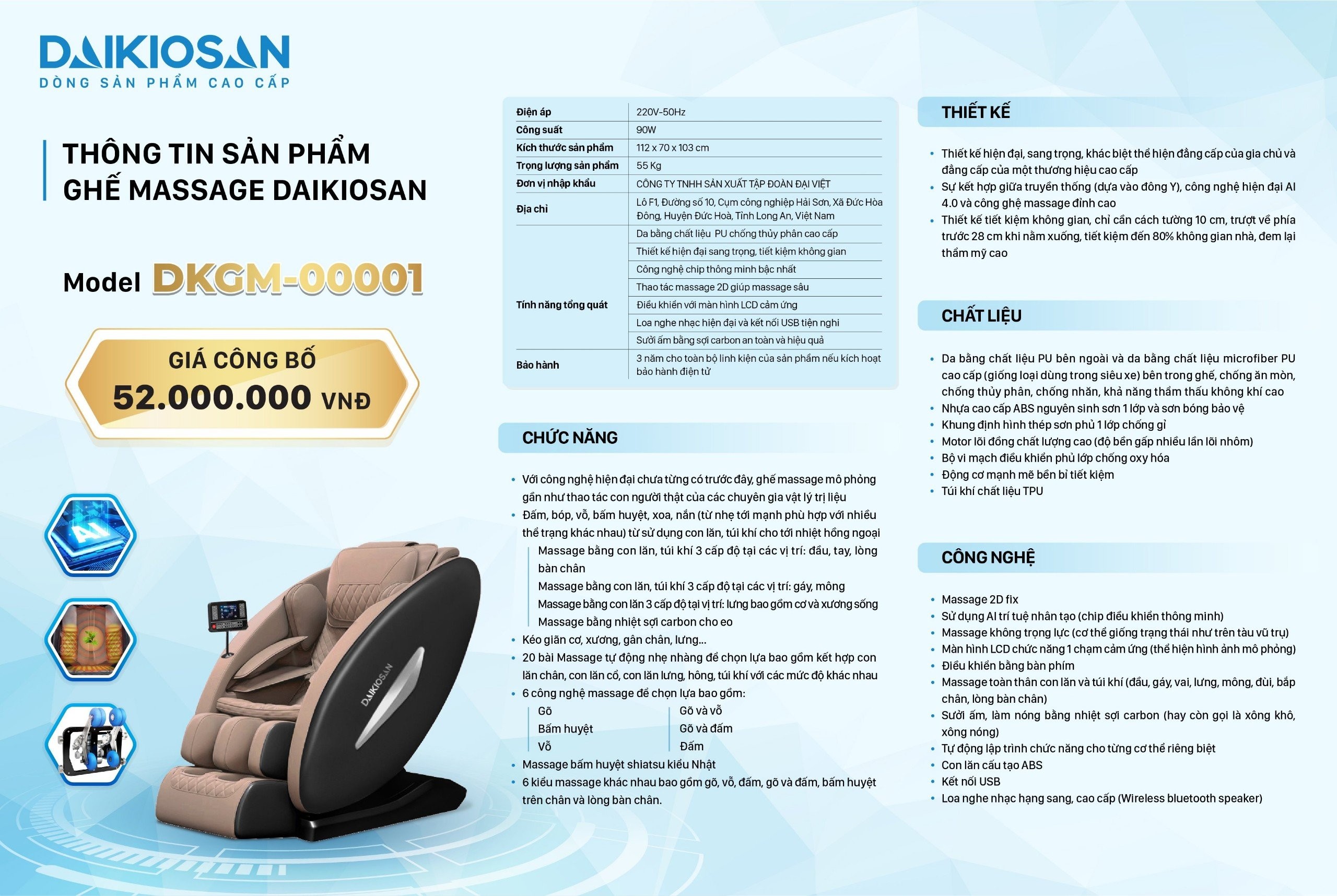 Ghế Massage cao cấp hàng chính hãng Daikiosan DKGM-00001 mới