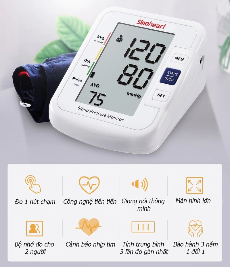 Máy đo huyết áp SinocareHOTLINE: Xem các sản phẩm của shop >>>>TẠI ĐÂYModel: Sinoheart BA-801 Công nghệ Đức (BẢ