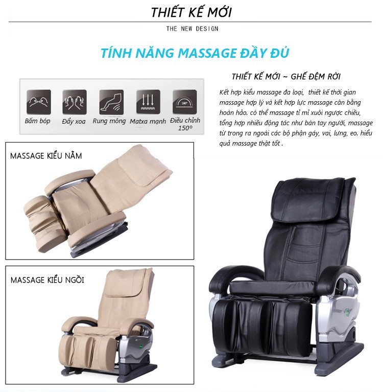 - - Ghế massage sử dụng phương pháp massage tổng hợp nhiều chức năng trong một sản phẩm
