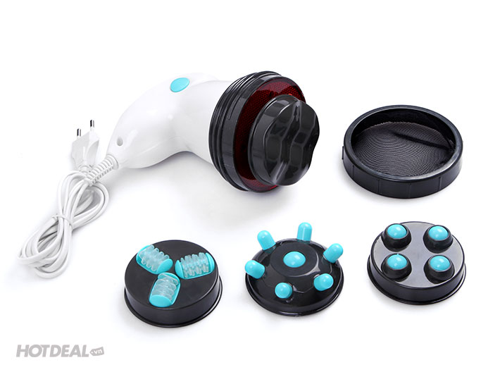 Đặc điểm nổi bật của máy massage cầm tay Innovation:Thiết kế thông minh:Máy được thiết kế với kiểu dáng nhỏ gọn, hợp thời trang cùng vẻ ngoài chắc chắn có thể điều chỉnh được tốc độ quay khi mà massage.Đèn hồng ngoại khi massge tác động vào sâu bên trong cơ thể, hỗ trợ mạnh mẽ giảm đau nhức, tan mỡ.Được tặng kèm 4 đầu massage khác nhau được sử dụng nhiều vị trí trên cơ thể, dễ dàng tháo lắp thay thế khi massage.Đầu lưới có khả năng bảo vệ tránh việc massage gần tóc bị cuốn vào máy khi dùng.Tay cầm hình cung rất là tiện dụng khi tự mình massage để có thể di chuyển bất kỳ vị trí nào như vai, gáy, cổ, lưng…Chất liệu cao cấp:Được làm bằng nhựa cứng cáp, có độ bền cao, nên đem lại sự an toàn khi dùng, tăng tuổi thọ của sản phẩm.