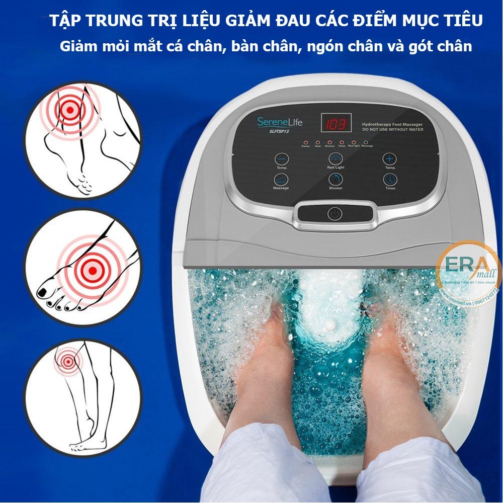 Bồn massage chân Serenelife tr liệu massage bằng nhiệt và rung tích hợp giúp giảm mỏi mắt cá chân, bàn chân, ngón chân và gót chân; giảm đau nhức chân và cải thiện quá trình tuần hoàn máu, giúp đôi chân khỏe hơn, góp phần nâng cao sức khỏe tổng thể.