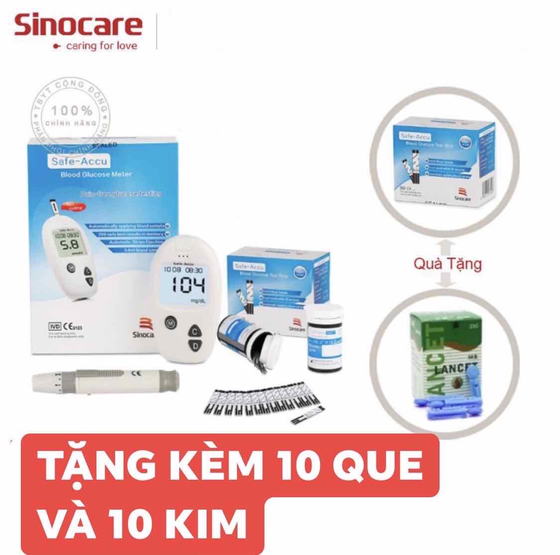MÁY ĐO ĐƯỜNG HUYẾT SAFE ACCU SINOCARE TẶNG KÈM 10 QUE 10 KIM