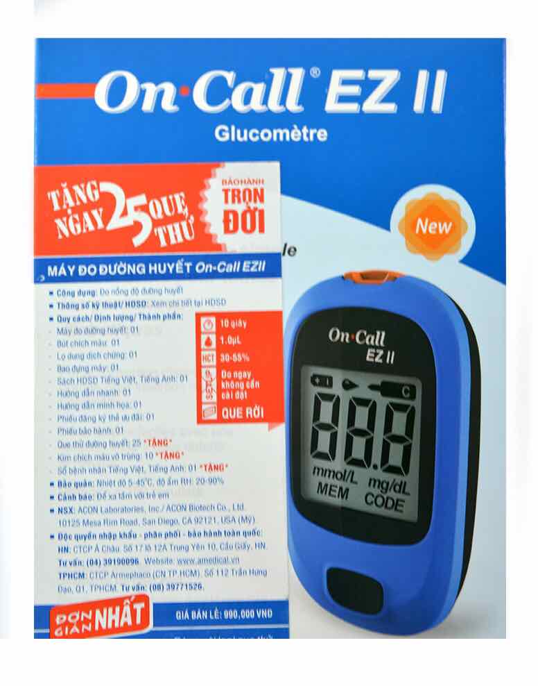 Máy đo đường huyết On Call EZ II chính hãng USA tặng 25 que 50 kim