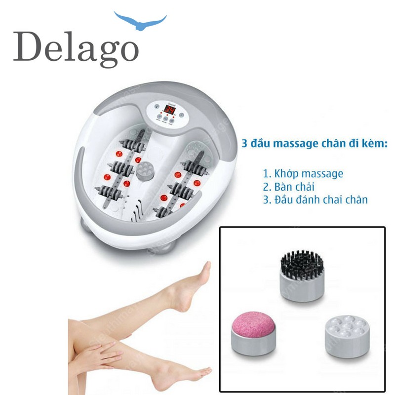 Bồn ngâm chân hồng ngoại FB50 có tác dụng thúc đẩy vòng tuần hoàn, đẩy mạnh quá trình tái tạo tế bào dưới tác động của đèn hồng ngoại!Thư giãn các cơ bắp, xua tan cơn tê buốt, rất tốt cho việc thư giãn và điều bệnh.Giúp cơ thể điều chỉnh những rối loạn chức năng của cơ quan hô hấp; tiêu hóa; tuần hoàn; thần kinh; cơ xương khớp; sinh dục; tiết niệu; giảm đau, êm dịu thần kinh, giảm stress; thư giãn và phục hồi sức khỏe.Hướng dẫn sử dụng bồn massage chân FB-50:Nhấn nút bật/ tắt để khởi động bồn và chọn chức năng cần dùng:- Massage rung: Nhấn nút massage (2) để bật chế độ massage rung. Bồn sẽ bắt đầu rung. Đặt chân lên các mấu massage, mức độ rung mạnh nhẹ tùy theo mức độ chân bạn ấn xuống.- Massage sủi: Nhấn nút sủi (3) để sử dụng.- Chức năng hẹn giờ: Có thể cài thời gian sử dụng từ 20 đến 60 phút. Mỗi lần nhấn nút hẹn giờ (4), thời gian sẽ tăng thêm 10 phút. Hết thời gian cài đặt, máy sẽ tự động tắt. Sau đó nghỉ ít nhất 15 phút trước khi sử dụng lại.- Nhiệt độ: Màn hình sẽ hiển thị nhiệt độ nước hiện thời. Để thay đôi nhiệt độ, nhấn và giữ nút nhiệt độ (5) cho tới khi chỉnh tới nhiệt độ nước mong muốn (35, 38, 42, 45, 48 độ C). Nhiệt độ dễ chịu nhất là từ 35 - 42 độ C, nhiệt độ cao nhất là 48 độ C. Nhiệt độ cài sẵn là 35 độ C.- Từ trường nam châm và hồng ngoại: Bồn ngâm có 4 nam châm và 8 đèn hồng ngoại tích hợp trong bồn giúp thúc đẩy hệ tuần hoàn và kích thích các vùng cảm ứng.- Trục massage: Bạn có thể cảm nhận hiệu quả massage đặc biệt bằng cách di chân trên 6 trục mát sa ở đáy bồn. Các trục này có thể tháo ra bằng cách nhấc lên.- Các đầu massage tùy chọn- Đầu bàn chải dùng để kích thích các vùng cảm ứng ở gót chân.- Đầu massage chăm sóc chân nhẹ nhàng, giúp thúc đẩy vòng tuần hoàn.- Đầu đánh chai dùng để tẩy các tế bào da chết và chai chân.- Động cơ điện dùng để tránh bồn quá nóng hoặc quá tải. Động cơ sẽ tự động ngắt khi nhiệt độ quá cao hoặc bồn hoạt động quá tải. Bồn có thể sử dụng lại sau khi nguội bớt.- Sau khi ngâm chân xong, tắt máy và rút phích cắm ra khỏi ổ điện. Thoát nước khỏi bồn sau khi dùng xong. Sau khi sử dụng, rửa bồn nhẹ nhàng bằng vòi nước. Có thể lau bồn bằng giẻ mềm và dấm trung tính.Thông số kỹ thuật của bồn ngâm chân FB-50:Tên sản phẩm Bồn ngâm chân hồng ngoại FB50 Beurer (Đức)Chức năng Massage rung, massage sủi, làm nóng và giữ ấm nước.Các mức nhiệt độ 35 48 độ C (Tùy chỉnh)Kích thước (Dài x Rộng x Cao) 55 x 39 x 22 (cm)g suất 400 W (trung bình)Thương hiệu BeurerXuất sứ ĐứcBảo hành 24 tháng#bonngamchan #bonngamchanbeurer #fb50 #beurerfb50 #beurer #fb50beurer
