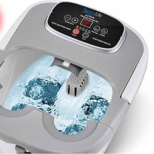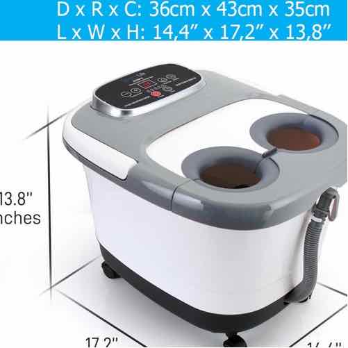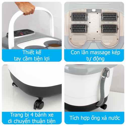 Bồn ngâm chân trang bị 20 ống phun sủi bọt để thư giãn, giải độc và làm mềm các vết chai thô ráp kết hợp chế độ rung để kích thích cơ bàn chân. Bạn cũng có thể thêm tinh dầu yêu thích của bạn để tăng hiệu quả thư giãn