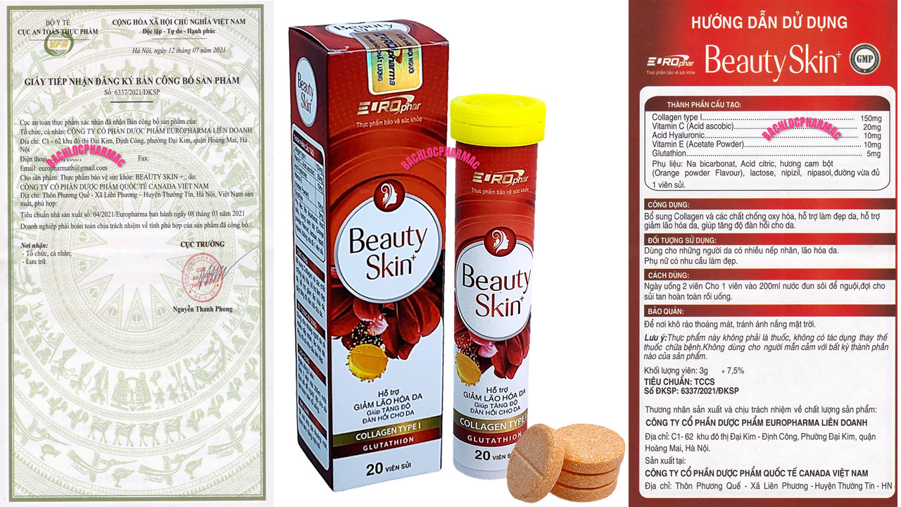 - Viên sủi Beauty Skin trắng da an toàn bằng những thành phần đã được kiểm chứng trên cơ sở khoa học.