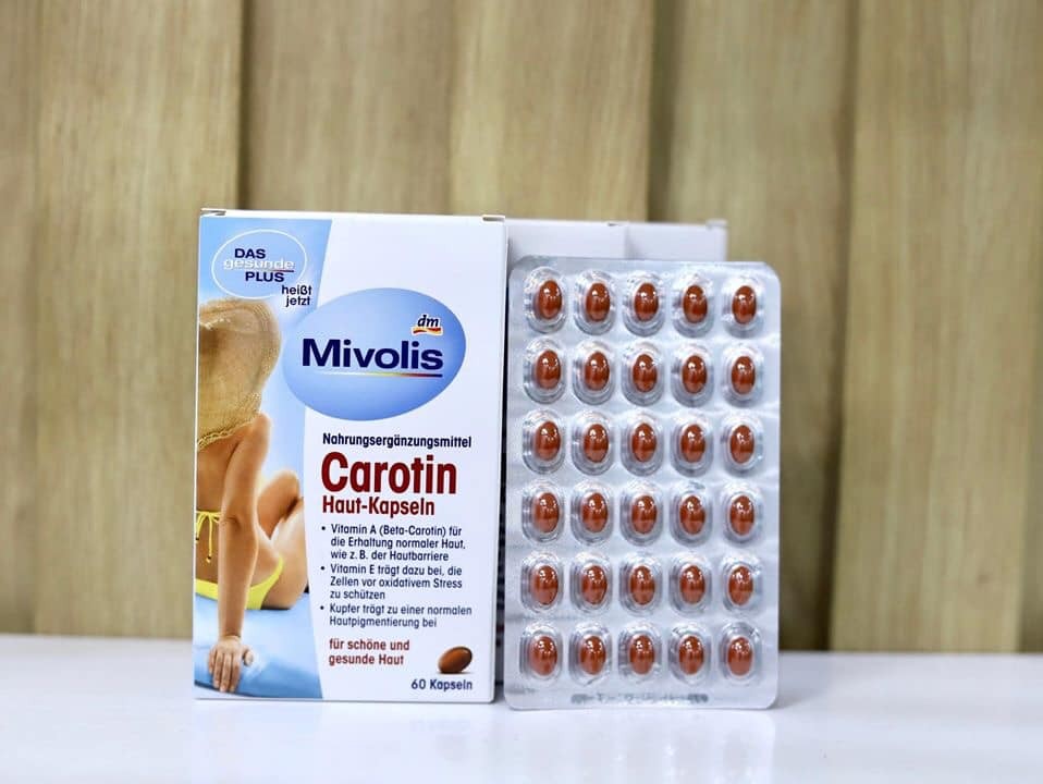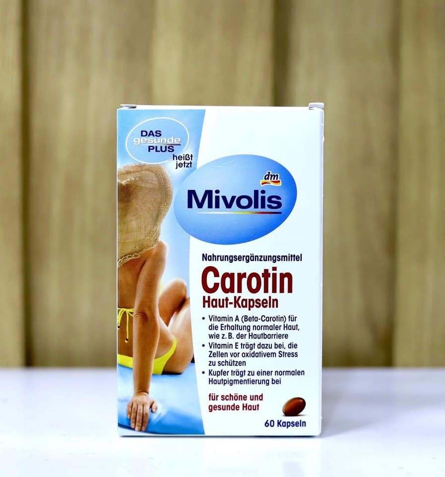 Viên uống chống nắng Carotin - Hàng Đức nội địaXuất xứ : ĐứcHộp 60V . Uống trong 2 thángGiá : 180KBác nào chuẩn bị 170.000đ