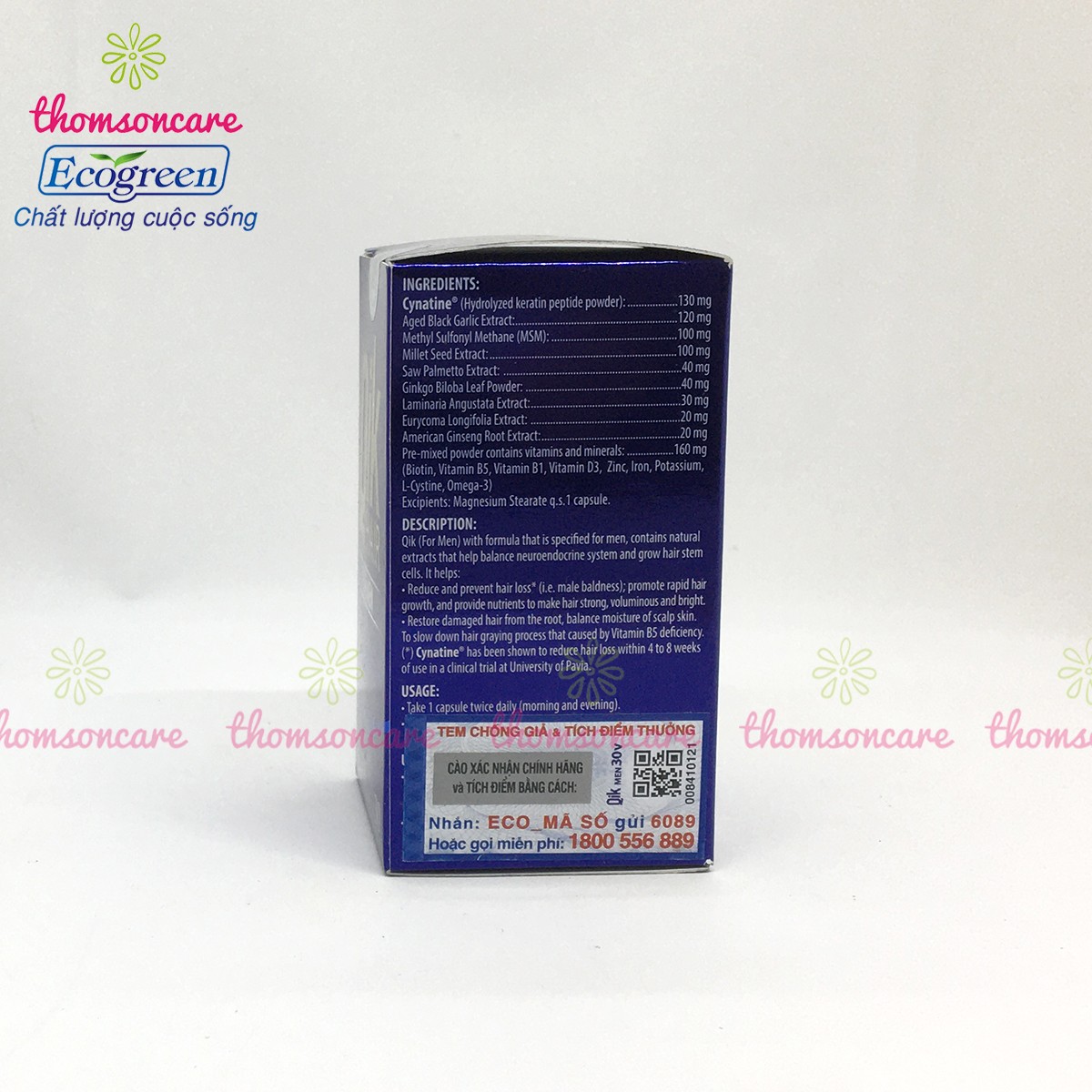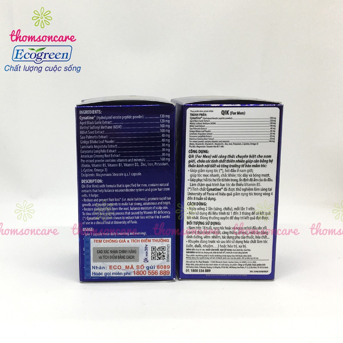 Qik hair for men viên uống mọc tóc cho nam giới kích thích mọc tóc nhanh chắc khỏe dày mượt ổn định độ ẩm da đầu chậm quá trình bạc tóc giảm tóc rụng