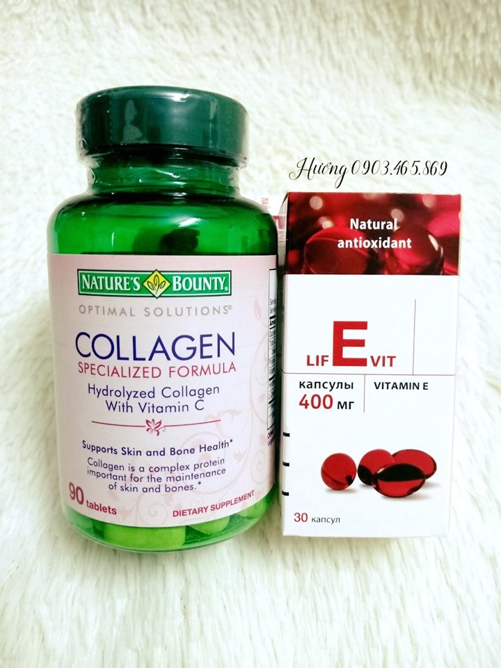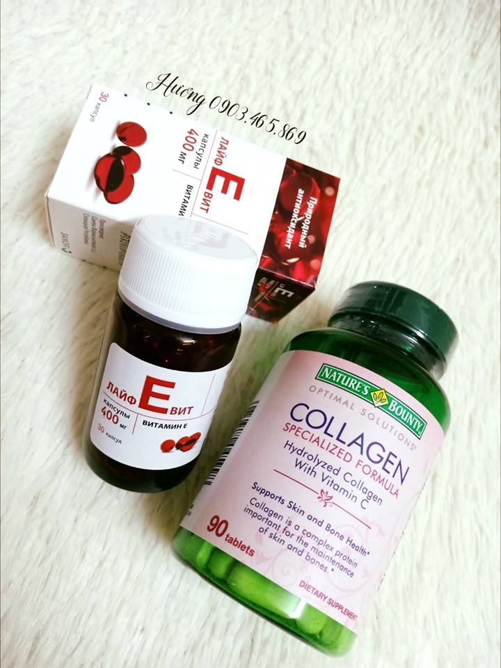 Bộ đôi Collagen C 90 viên + vitamin e 400mg Nga, tái tạo da, giúp da căng mịn, giảm nám, tàn nhang, làm chậm lão hoá