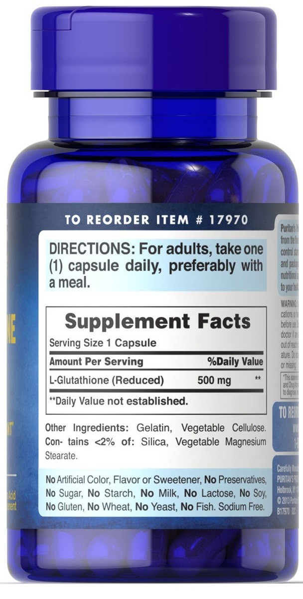 TPCN viên uống trắng sáng da, giảm nám, thải độc da Glutathione 500mg của Puritan's pride Mỹ