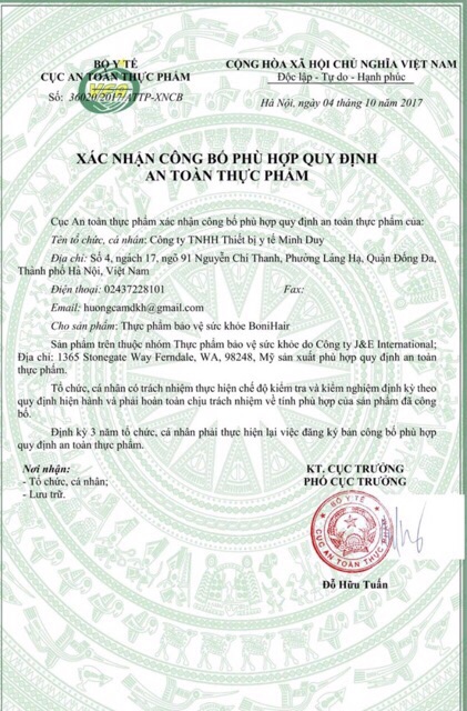 👉 Số XNCB: 36020/2017/ATTP-XNCB