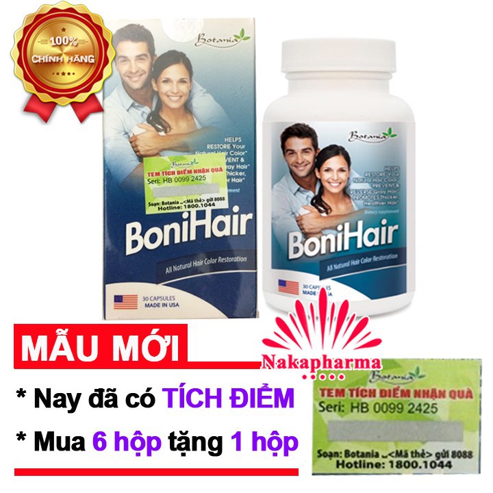 - Mỗi hộp bạn tích được 01 điểm. Khi tích đủ 06 điểm Quý khách được tặng ngay 1 hộp BoniHair cùng loại