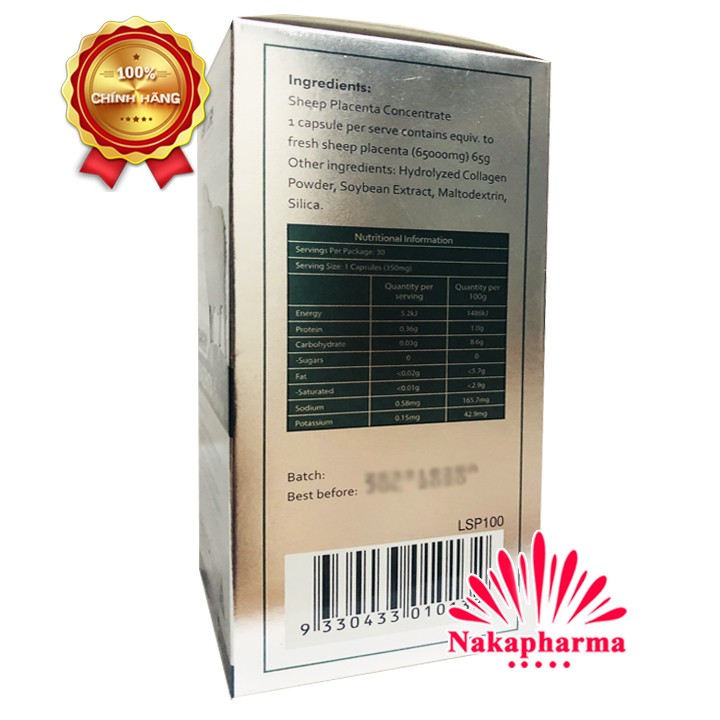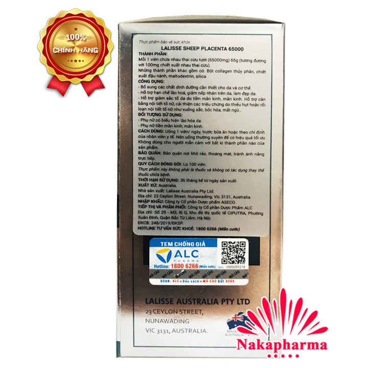✅ [CHÍNH HÃNG] Nhau thai cừu Úc LALISSE SHEEP PLACENTA 65000 – Ngừa lão hóa da, giảm nếp nhăn, cân bằng nội tiết tốt nữ, tăng cường sinh lý