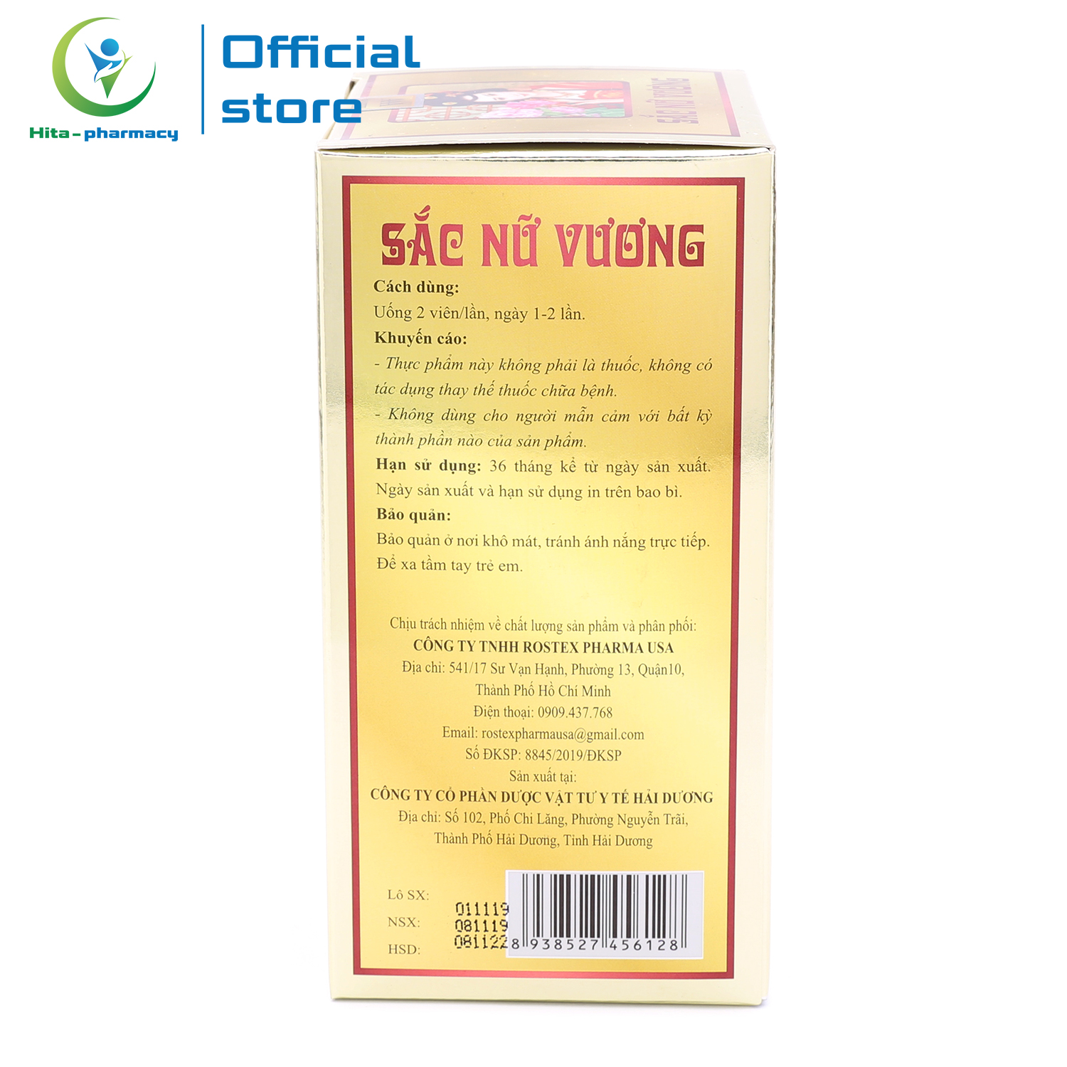 - Chịu trách nhiệm về chất lượng sản phẩm và phân phối: CÔNG TY TNHH ROSTEX PHARMA USA.