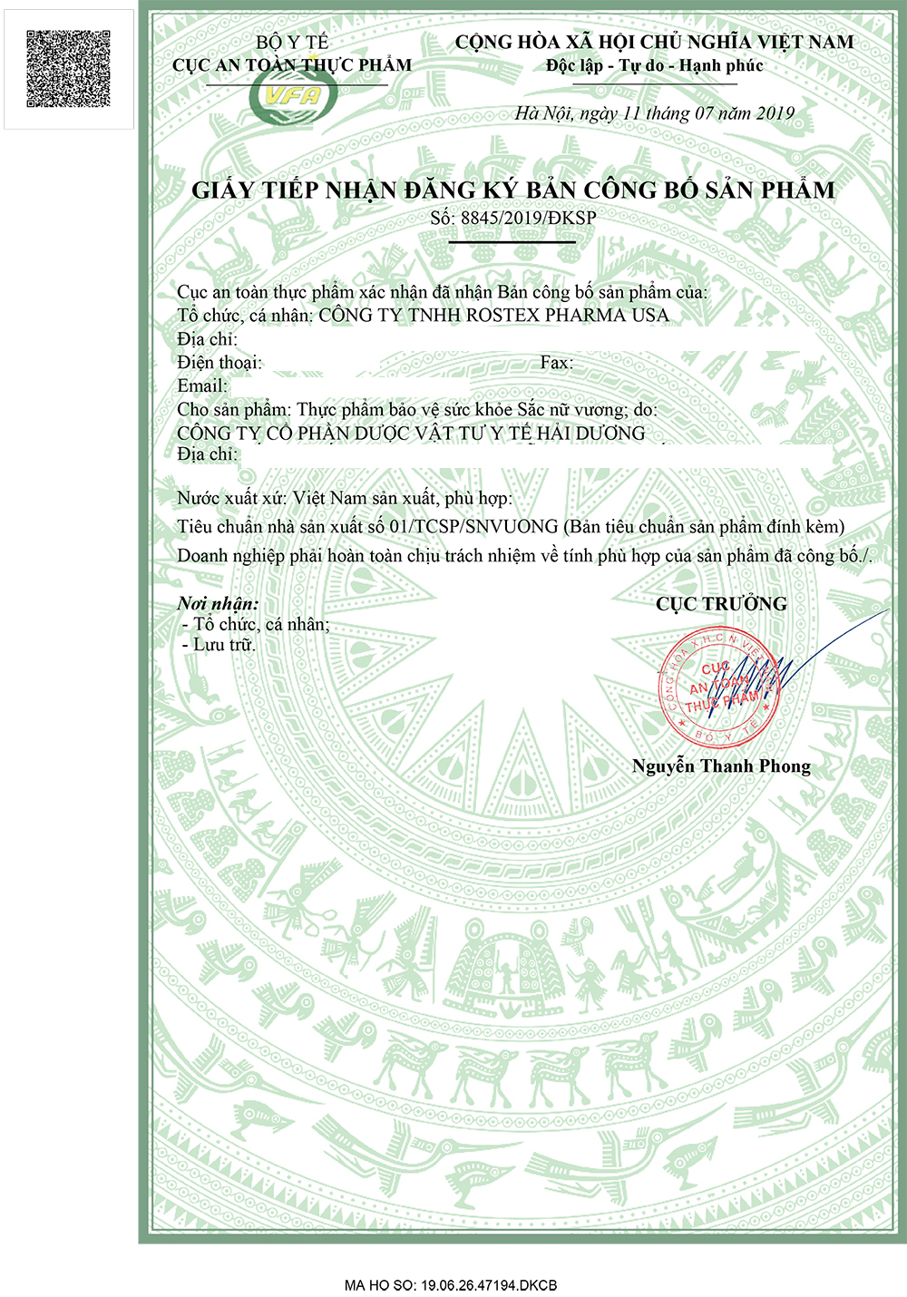 - Sản phẩm Sắc Nữ Vương được Bộ Y Tế cấp phép sản xuất, an toàn khi sử dụng.