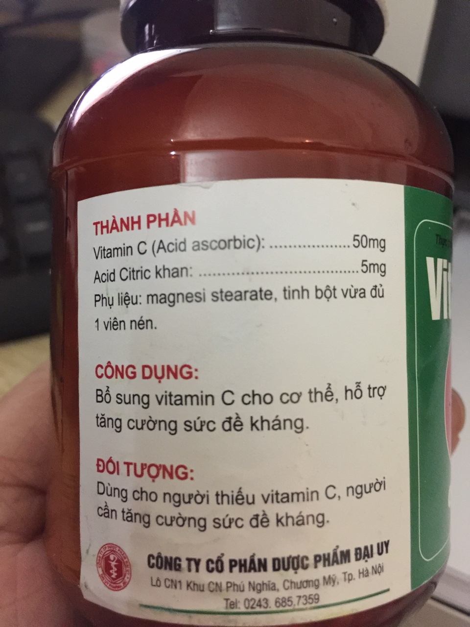Vitamin C Đại Uy (Lọ 1000 viên) : Bổ sung vitamin C cho cơ thể, hỗ trợ tăng cường sức đề kháng
