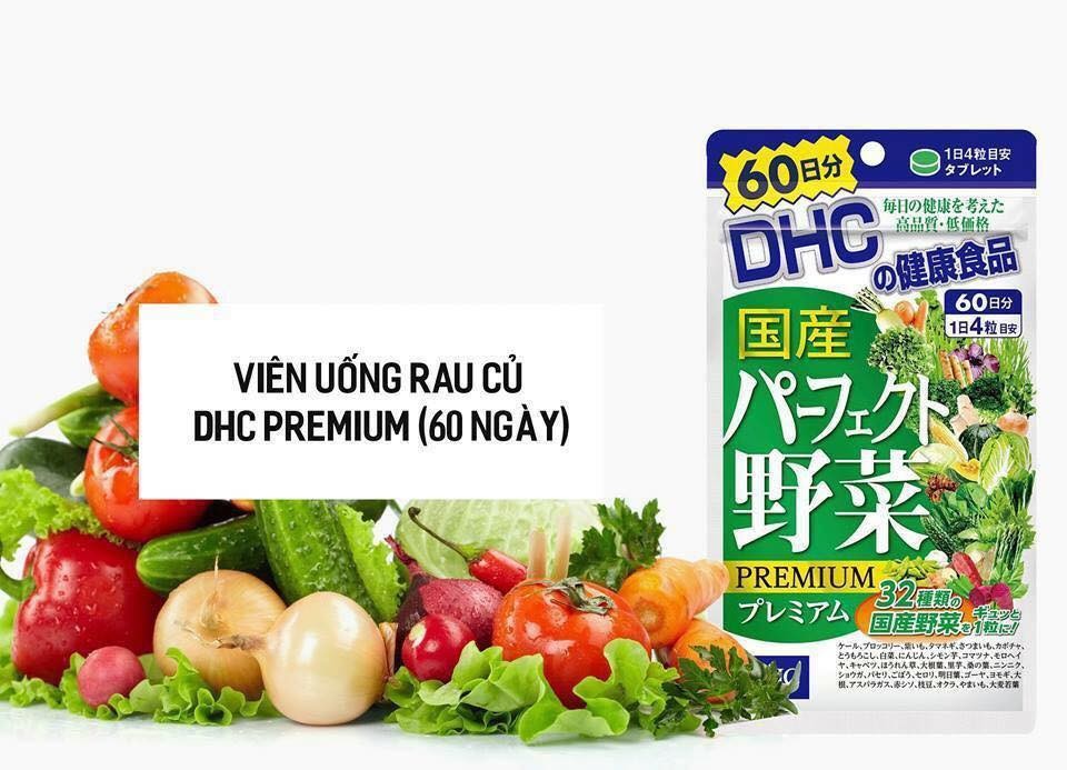 - Viên rau củ quả DHC là sản phẩm bổ sung chất xơ dạng viên, được sản xuất từ 32 loại rau củ quả cung cấp dinh dưỡng cơ bản cần thiết cho cơ thể.