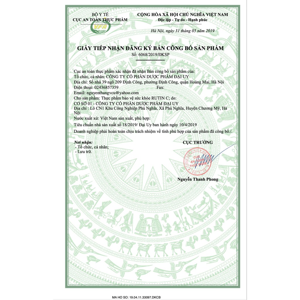 Rutin C Đại Uy - Tăng cường tính bền mạch máu, hỗ trợ giảm chảy máu chân răng, xuất huyết dưới da
