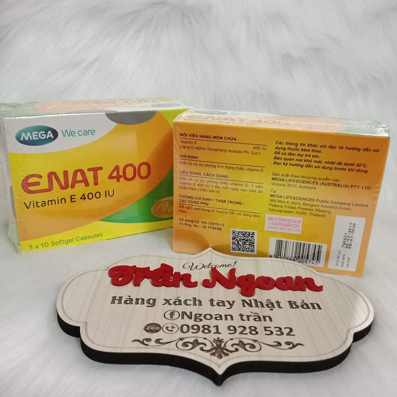 ENAT 400 viên nang mềm, mỗi viên chứa 400 đơn vị quốc tế Vitamin E thiên nhiên. ENAT 400 là chất chống lão hoá, có tác dụ