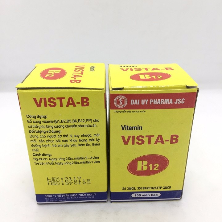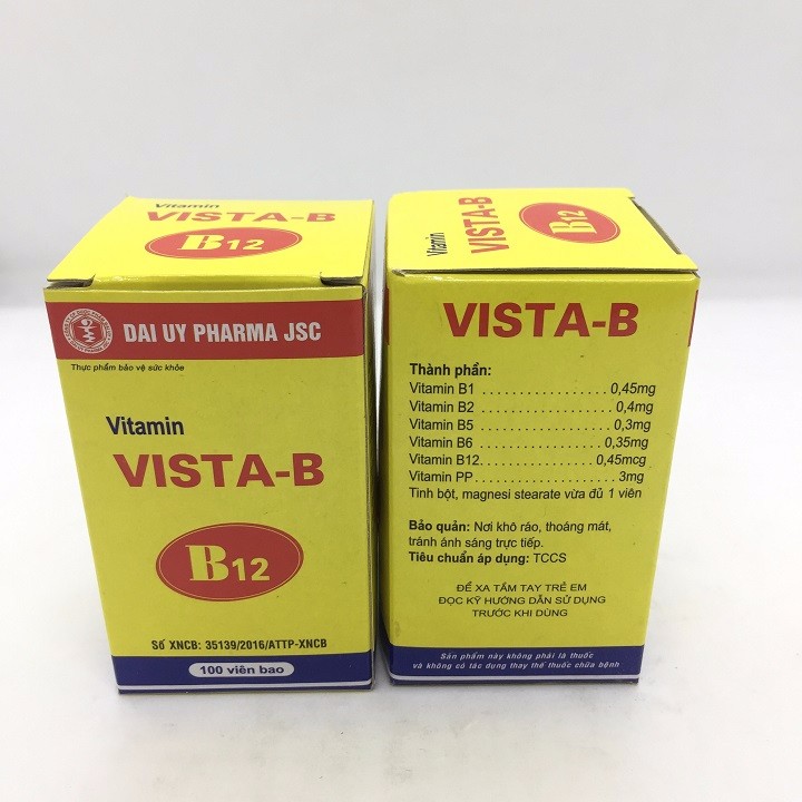 Thông tin VISTA – B (100 viên)Thành phần:Vitamin B1 0,45mg, vitamin B2 0,4mg, Vitamin B5 0,3mg, Vitamin B6 0,35mg, Vitamin B12 0,45mcg, vitamin 26.000đ