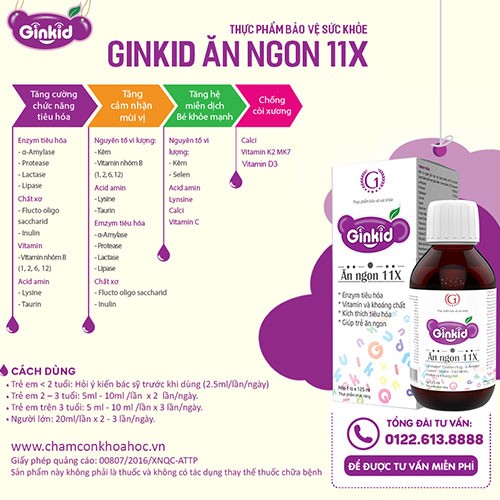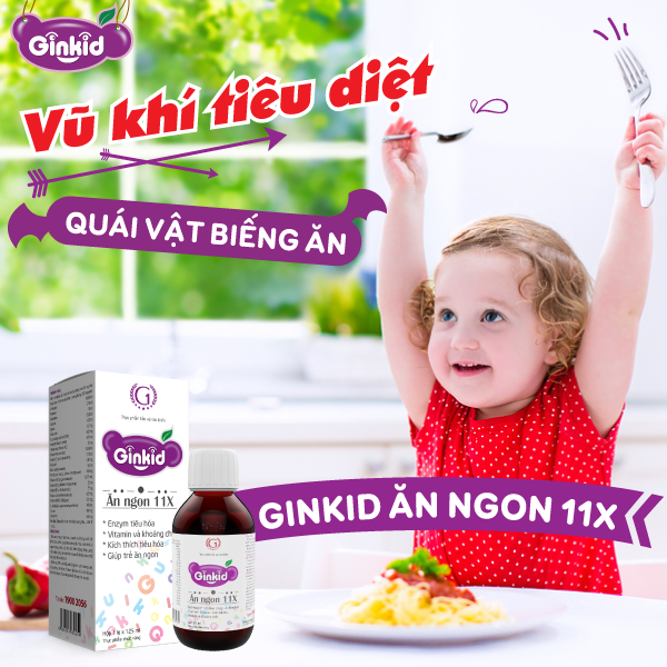 GINKID ĂN NGON 11X: CẢI THIỆN CHỨC NĂNG TIÊU HÓA – TRẺ HẾT BIẾNG ĂN Biếng ăn là tình trạng phổ biến ở trẻ em và